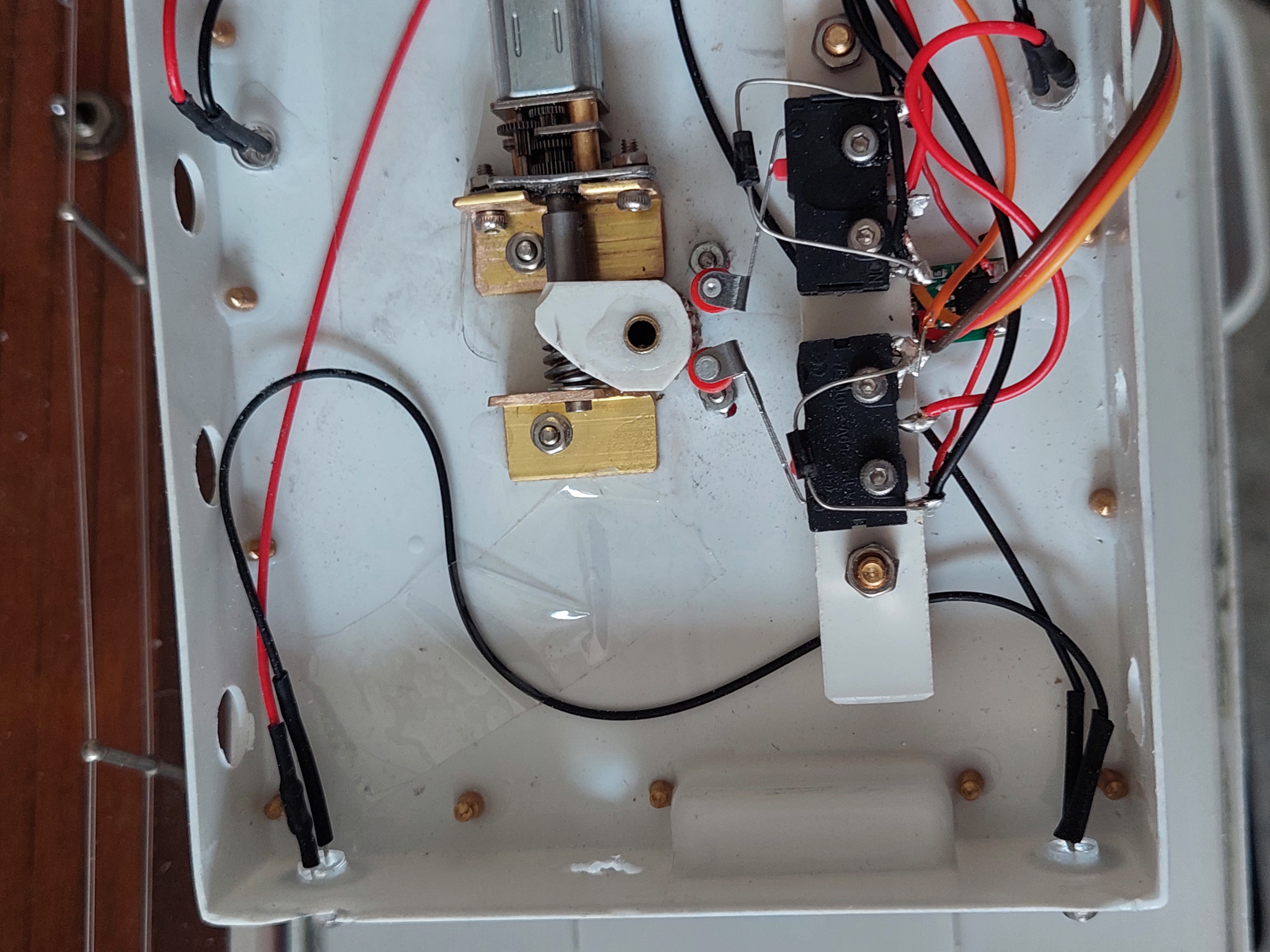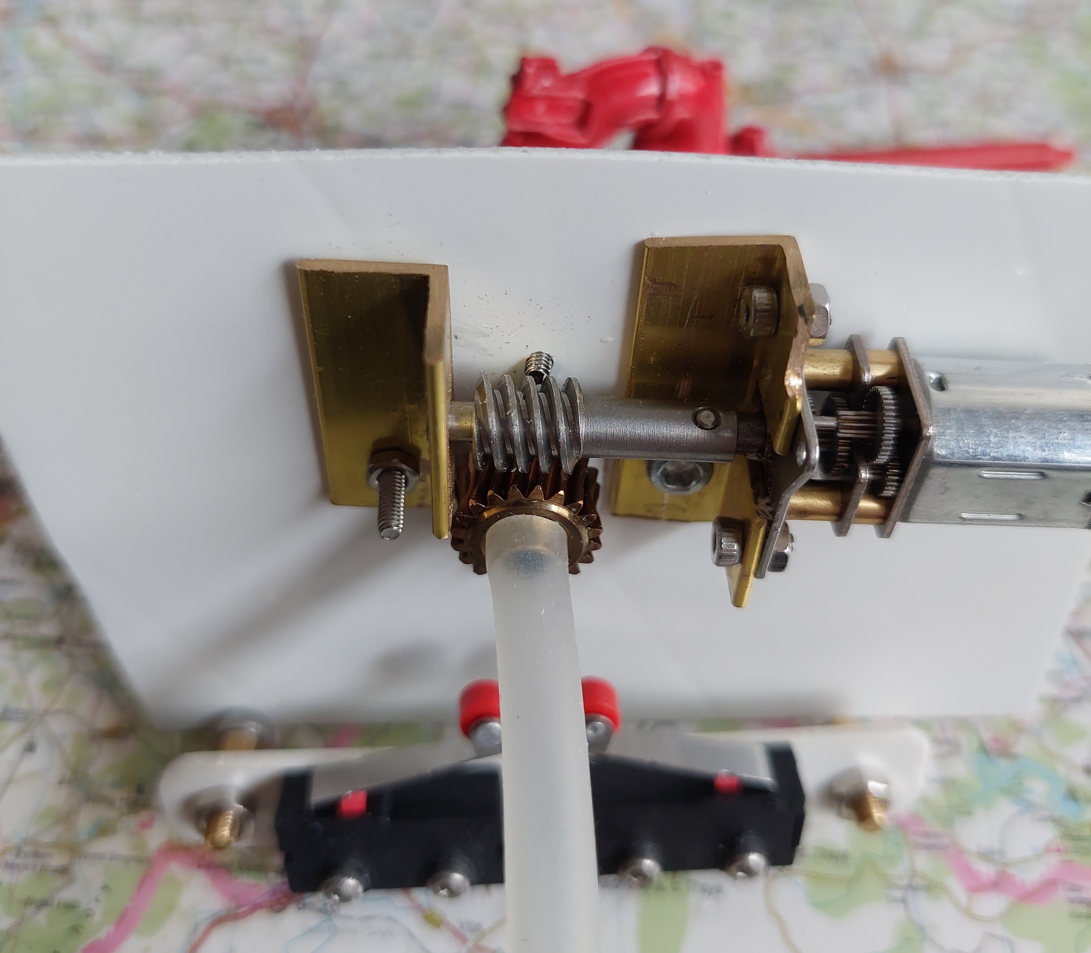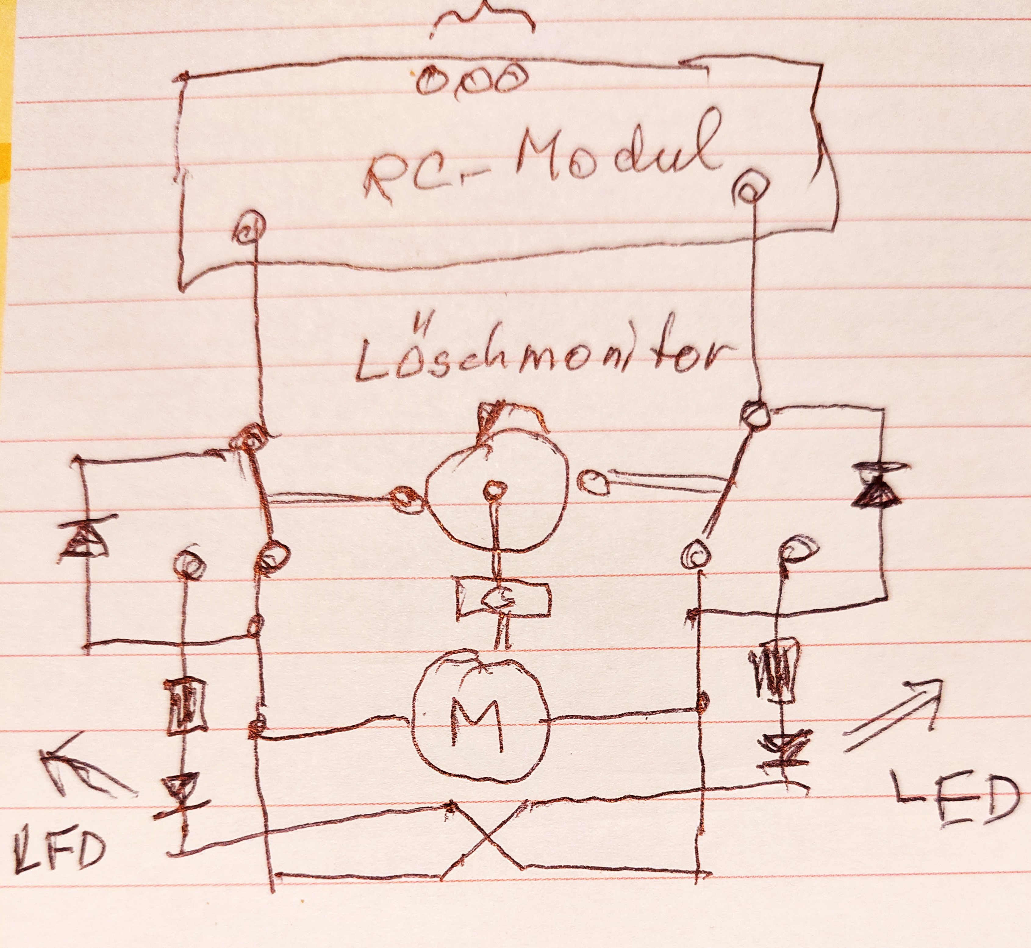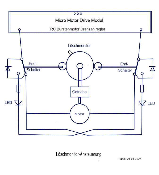 Schaltung meines Löschmonitor-Antriebs mit Schneckenwellengetriebe und Endabschaltung mit Seitenabschalt-LED-Anzeige.